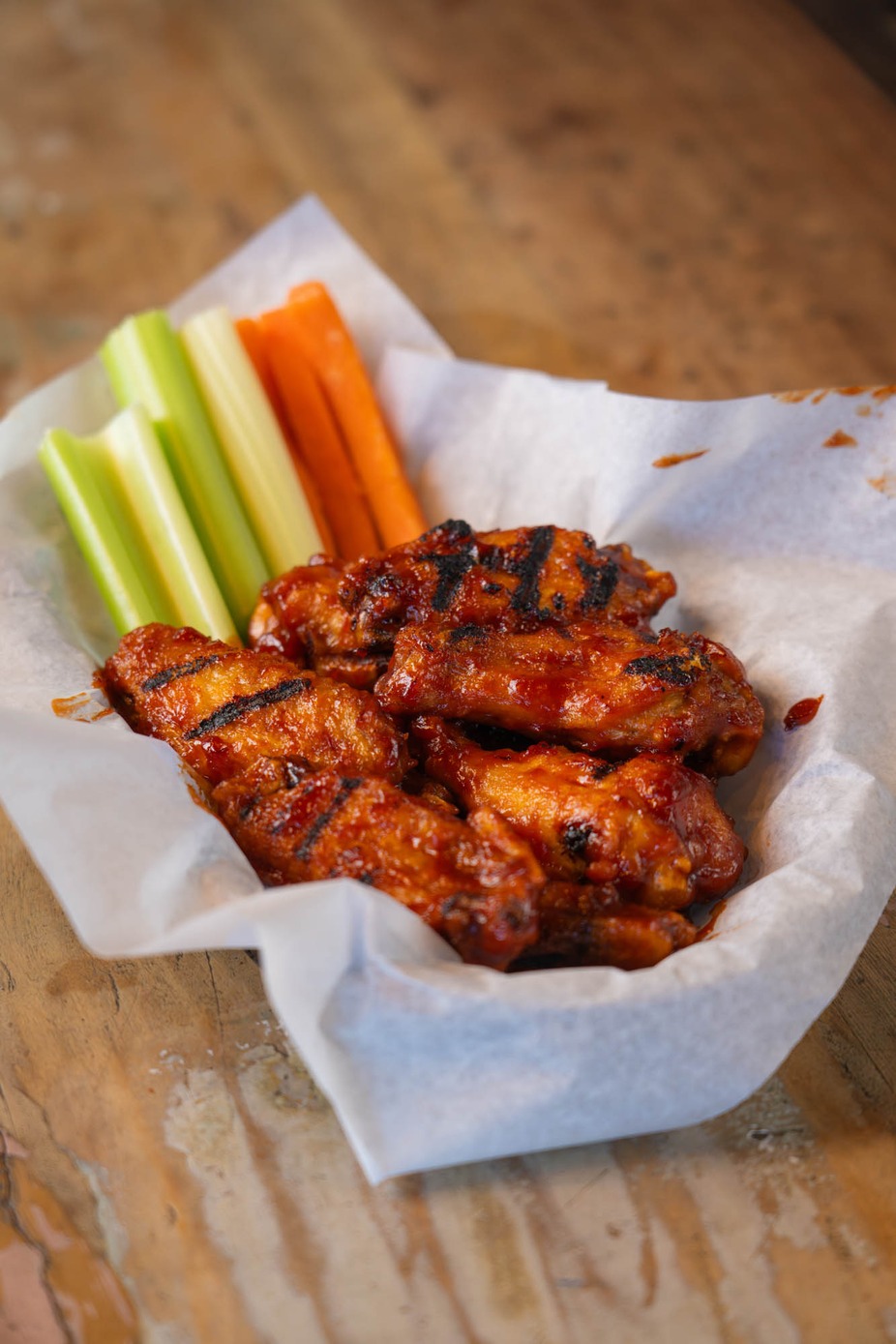 Happy Hour - Half Off BONE IN CHICKEN WINGS. Every day Happy Hour Specials: Half off draft beers, well drinks, most wines, fries and bowls.